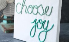Escreve a(s) palavra(s) na tela com um lápis. Neste exemplo, a Liz Fourez optou por escolher a frase “Choose Joy” (Escolhe alegria).