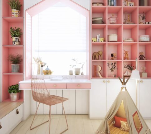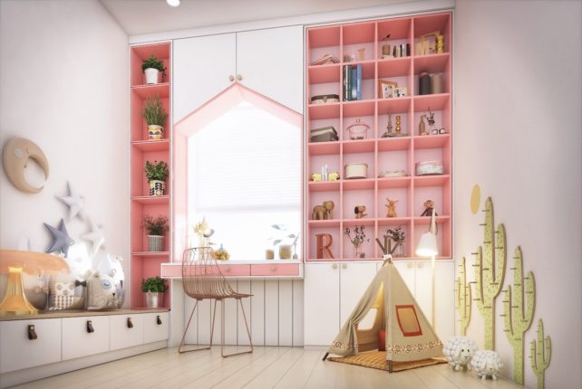Acima, este projeto para o qual você só precisa de algumas partes de um palete. Corte algumas tábuas, pinte-as e monte as prateleiras com pregos e um martelo. Note que estas prateleiras são, na verdade uma espécie de caixa que fazem com que o conteúdo se mantenha seguro e bem organizado. Você pode adicionar este tipo de prateleiras a espaços como o escritório da casa, a sala, o quarto das crianças, a cozinha ou o banheiro. Elas são muito práticas e versáteis.