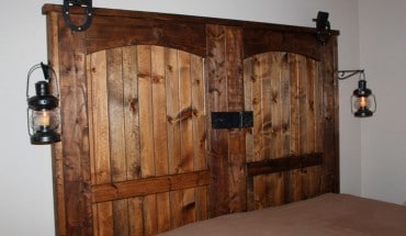 Adoro o aspeto rústico desta cabeceira de cama feita com base em dois portões velhos de um celeiro.
