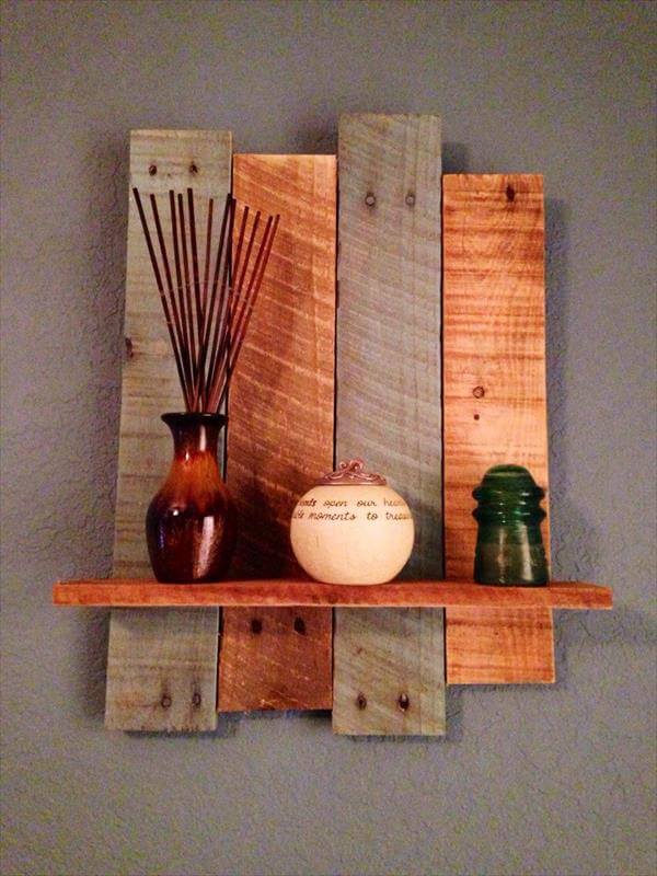 Esperamos que as prateleiras sejam muito fáceis de construir com paletes e que se possa realmente aproveitar os patins de expedição para fazer belas demonstrações das paredes interiores, instalando-lhes prateleiras decorativas! Esta prateleira rústica feita de paletes é simplesmente incrível para exibir seu mural e molduras, brinquedos de arte e até mesmo as velas.