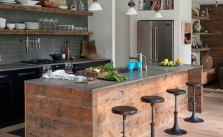Neste exemplo, a madeira foi deixada ao natural, para criar um aspeto rústico.
