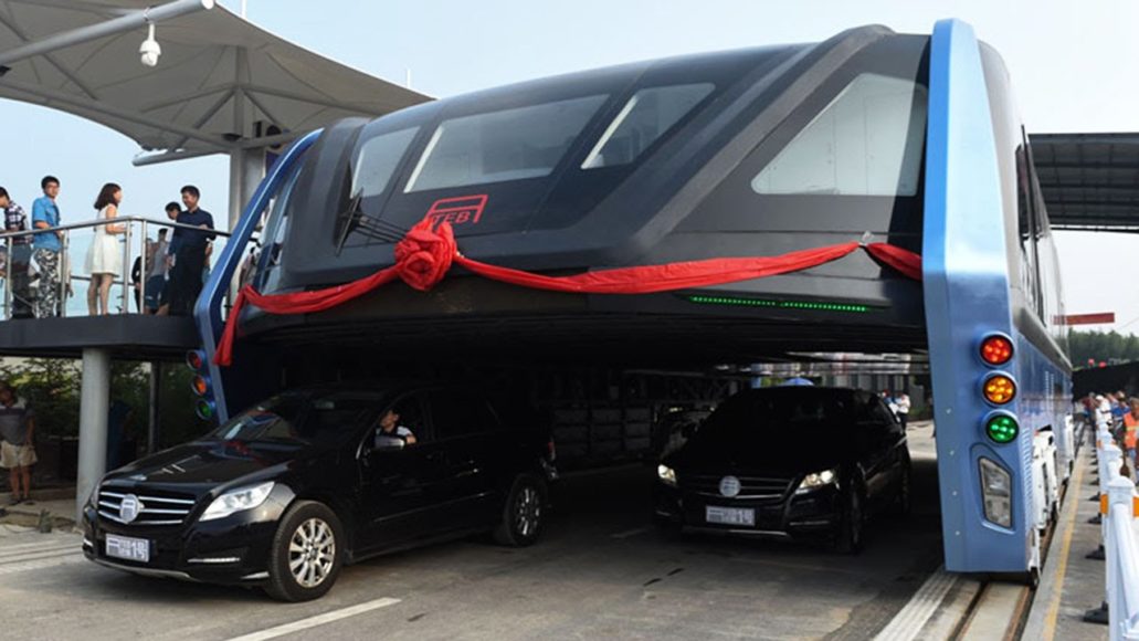 A grande sacada deste ônibus, chamado de Transit Elevated Bus é que ele é a prova de trânsito. Essa garantia de que ele jamais pegará trânsito só é possibilitada, pois o sistema do ônibus anda um andar acima do que a pista de carros. Este ônibus tem uma espécie de trilhos laterais que o fazem mais alto que a pista dos carros.